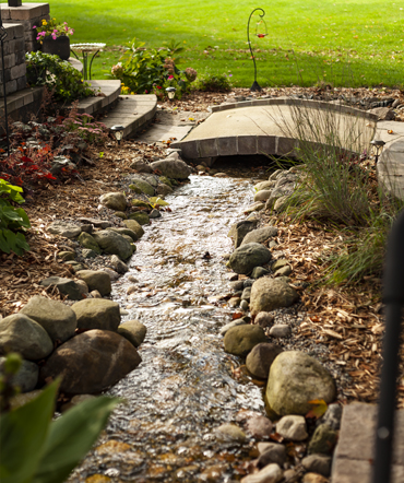 Water features cover a wide variety of choices. Anywhere from a small fountain such as a bubbling rock or vase, to a water garden complete with fish and plants. We have installed many sizes and varieties. Water movement is a very relaxing sound. People love to listen to that sound. Today’s water features are designed in order to let you enjoy that sound with very little maintenance required.